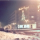 W półokrągłym budynku obok jest jeszcze księgarnia, od kilku lat zamknięta po kilkudziesięciu latach działalności. Nad nią, mimo ciepłej pory roku świąteczna dekoracja.