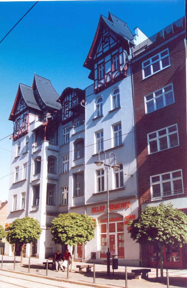 Oba mają swoją historię. Budynki na rogu tych ulic tworzyły hotel z wytwórnią likierów. Wbudował je Julius Kochman w roku 1907 (na miejscu starego). W styczniu 1945 roku został podpalony przez sowieckich żołnierzy i nieco inaczej odbudowany.